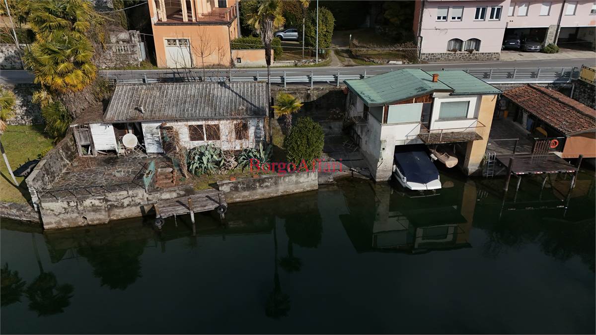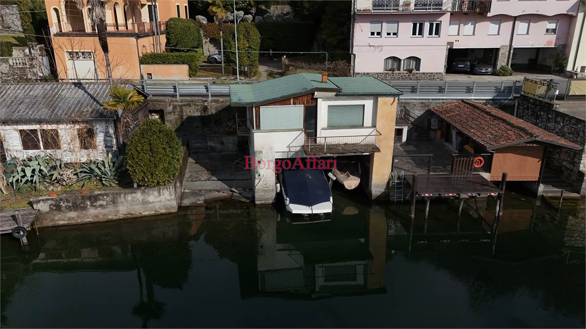 A covered boathouse with an independent studio above (bedroom and bathroom), a 67 sqm lakefront cottage, garage for two cars in a basement space, outdoor parking, and a private 1,400 sqm garden enveloping the property in absolute privacy.