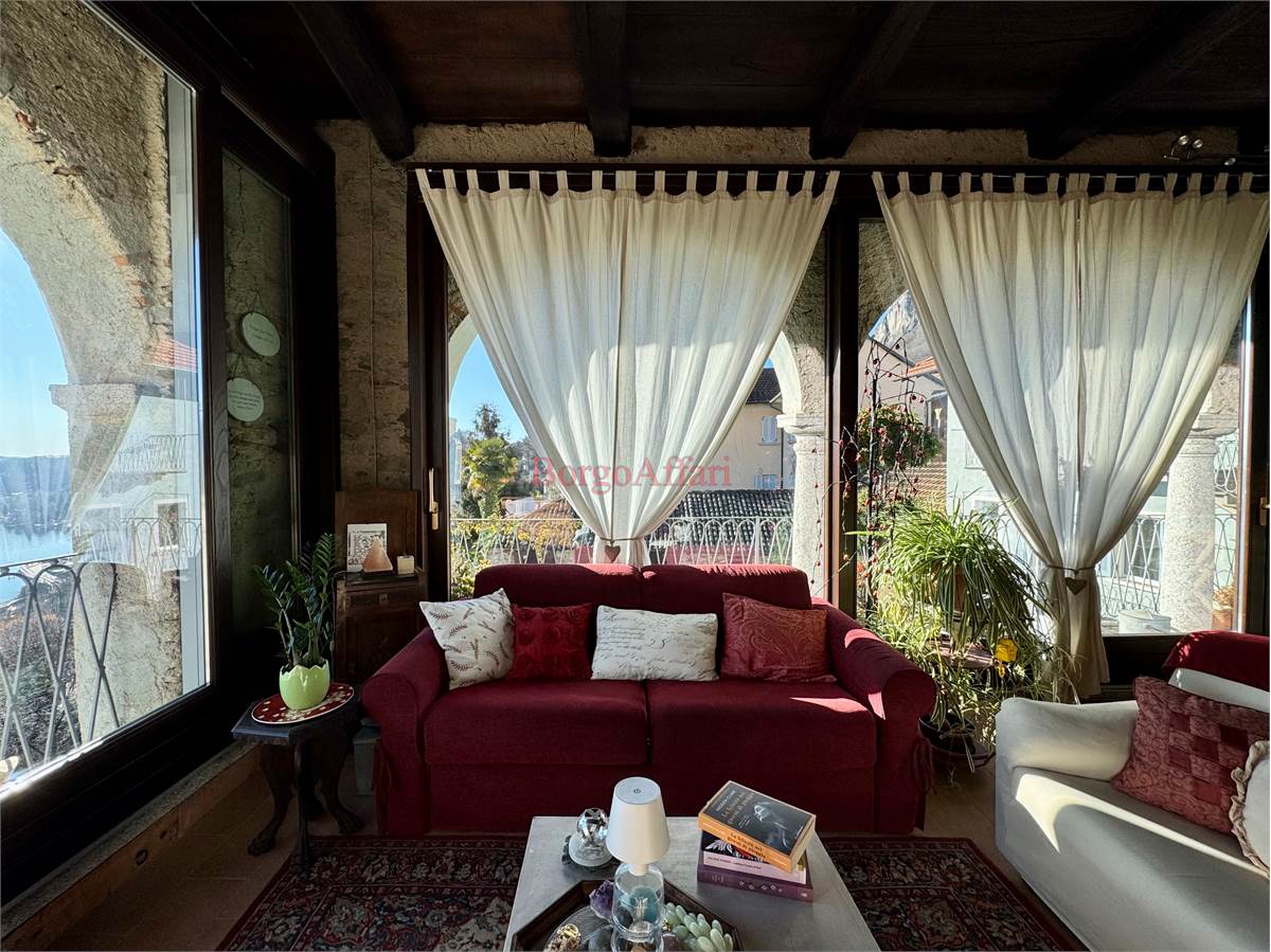 L'attico è composto da una grande zona giorno dalla quale si può vedere il lago, angolo cottura, ripostiglio, camera, bagno, cabina armadio e grande balcone con la possibilità di ammirare il meraviglioso panorama, tra cui l'Isola di San Giulio.